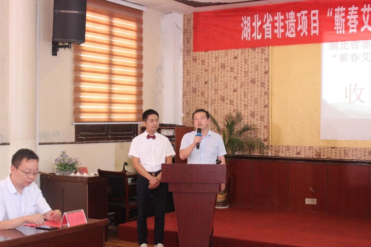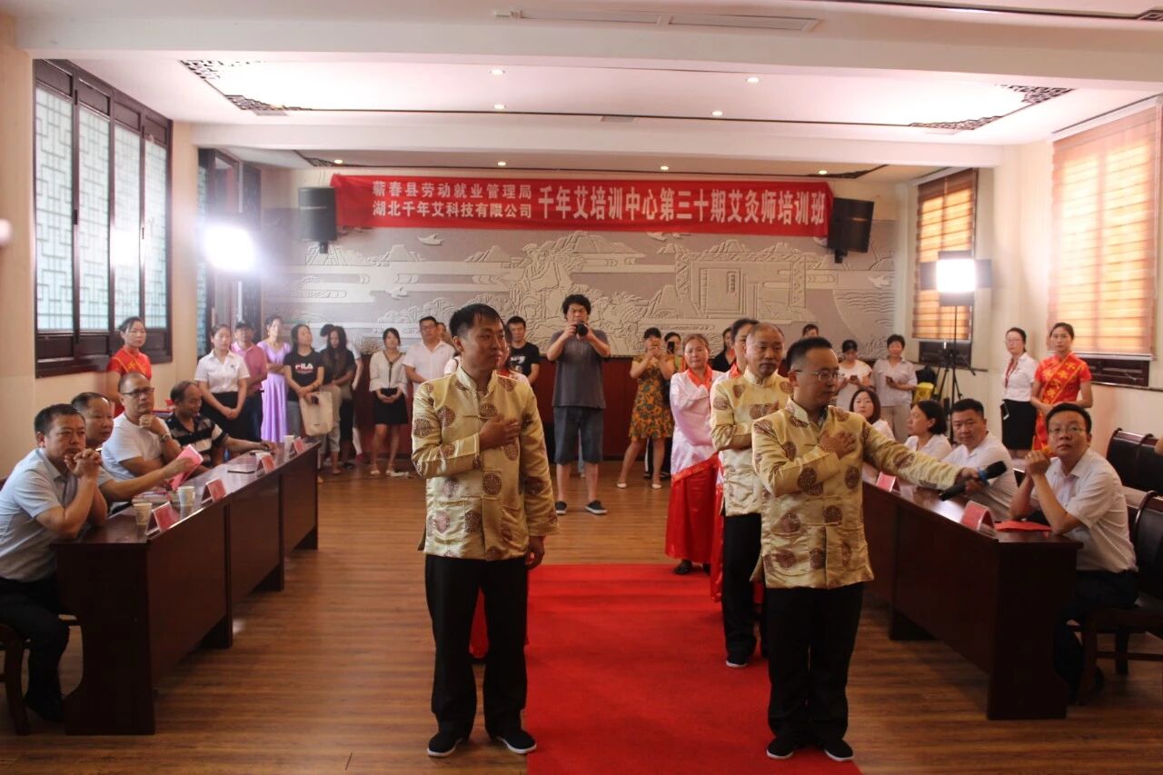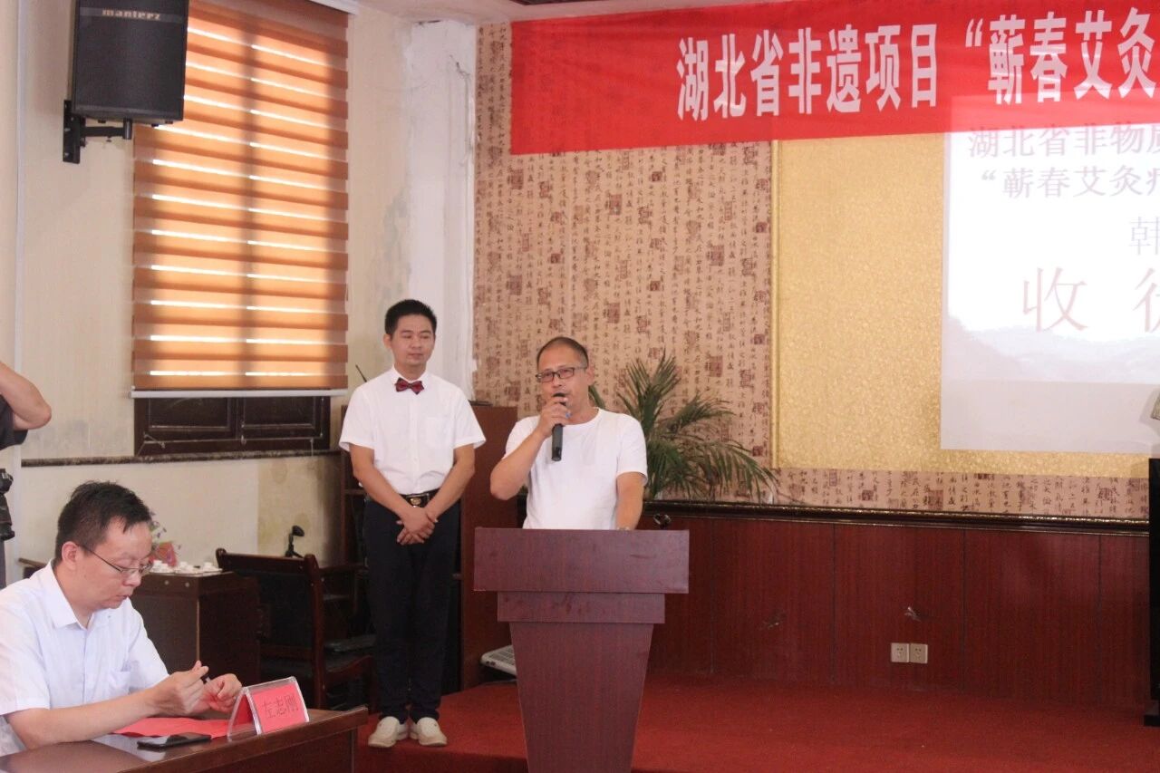 县健康办副主任杜伟,县非遗中心副主任袁朝阳作为嘉宾在现场发表了讲话,他们都高度赞扬了千年艾作为当地蕲艾产业领头企业,为推广弘扬蕲艾文化所做出的努力。充分肯定了本次收徒仪式对于传承艾灸文化的重大意义,并祝福千年艾公司再接再厉,进一步积极做好保护制度、人员队伍、基础设施建设、社会宣传等长期性工作,让更多的人了解“蕲春艾灸疗法”,体验“蕲春艾灸疗法”,为百姓健康造福祉。